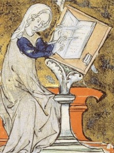 A grail-dish in both her hands —